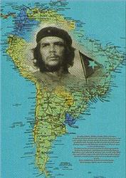 Textile Posters featuring officially licensed graphics. The posters are screen printed, 30" x 40" pieces of fabric art . They are printed on sheer, soft-as-silk material for the highest quality. Che Guevara photo over south America.