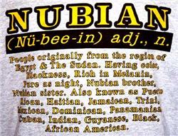 People originally from the region of Egypt & The Sudan. Having color, Blackness, Rich in Melanin, Pure as night, Nubian brother, Nubian sister. Also known as Puerto Rican, Haitian, Jamaican, Trini, Mexican, Dominican, Panamanian, Cuban, Indian, Guyanese, Black, African American."